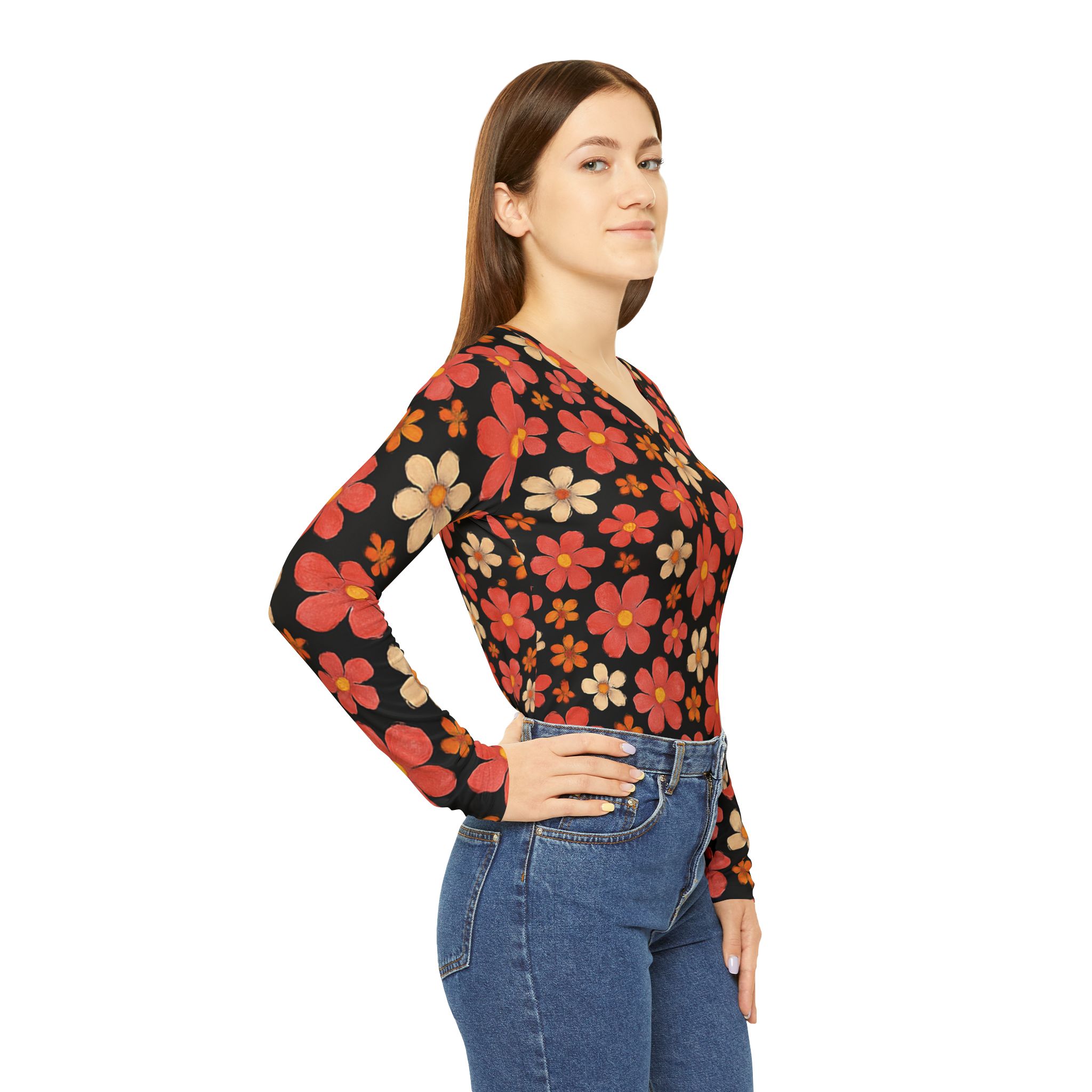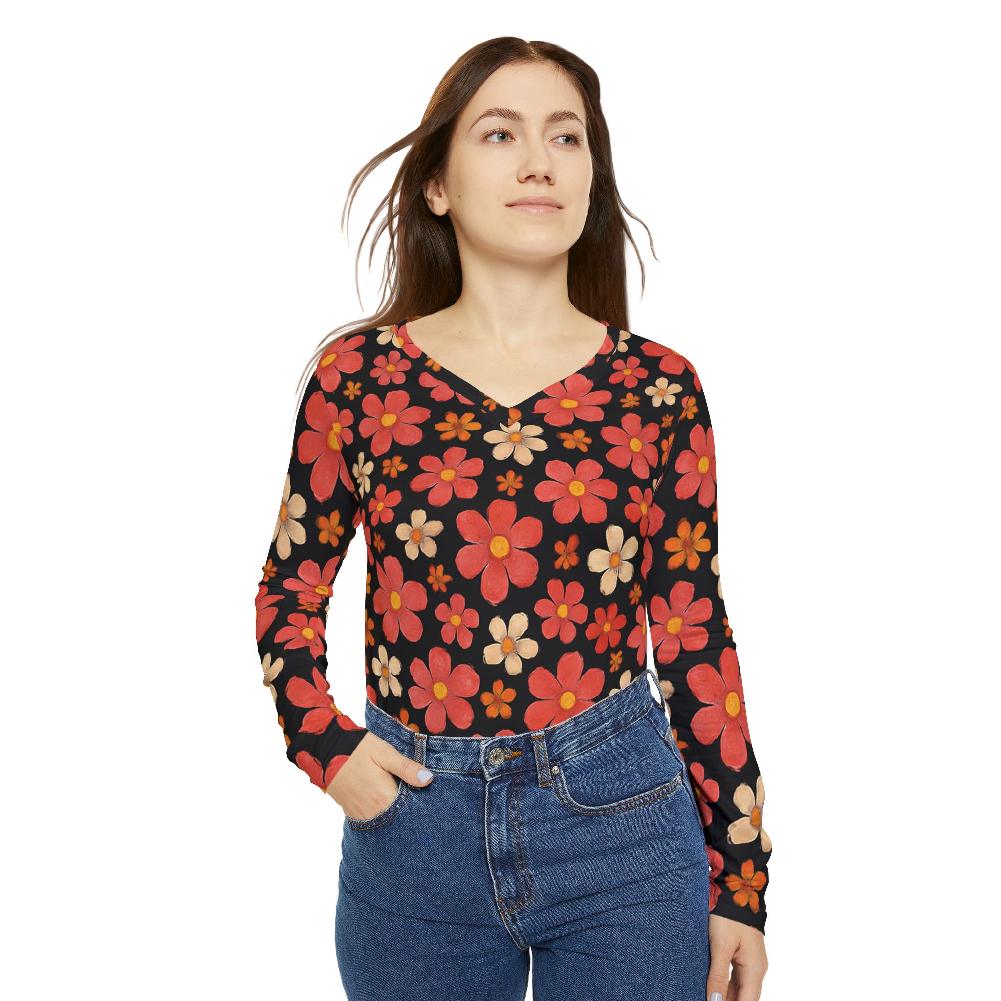 Introducing a stunning Women’s Long Sleeve V-neck Shirt that combines style with comfort. This shirt features a delightful floral pattern that radiates warmth and positivity, making it perfect for casual outings, brunch dates, or cozy evenings at home. It embodies a relaxed yet fashionable vibe, seamlessly fitting into any woman’s wardrobe. Ideal for those who love to express their personality through unique designs, this shirt is perfect for birthdays, holidays, or even as a lovely gift for friends and family. Embrace your individuality and feel fabulous in this versatile piece!