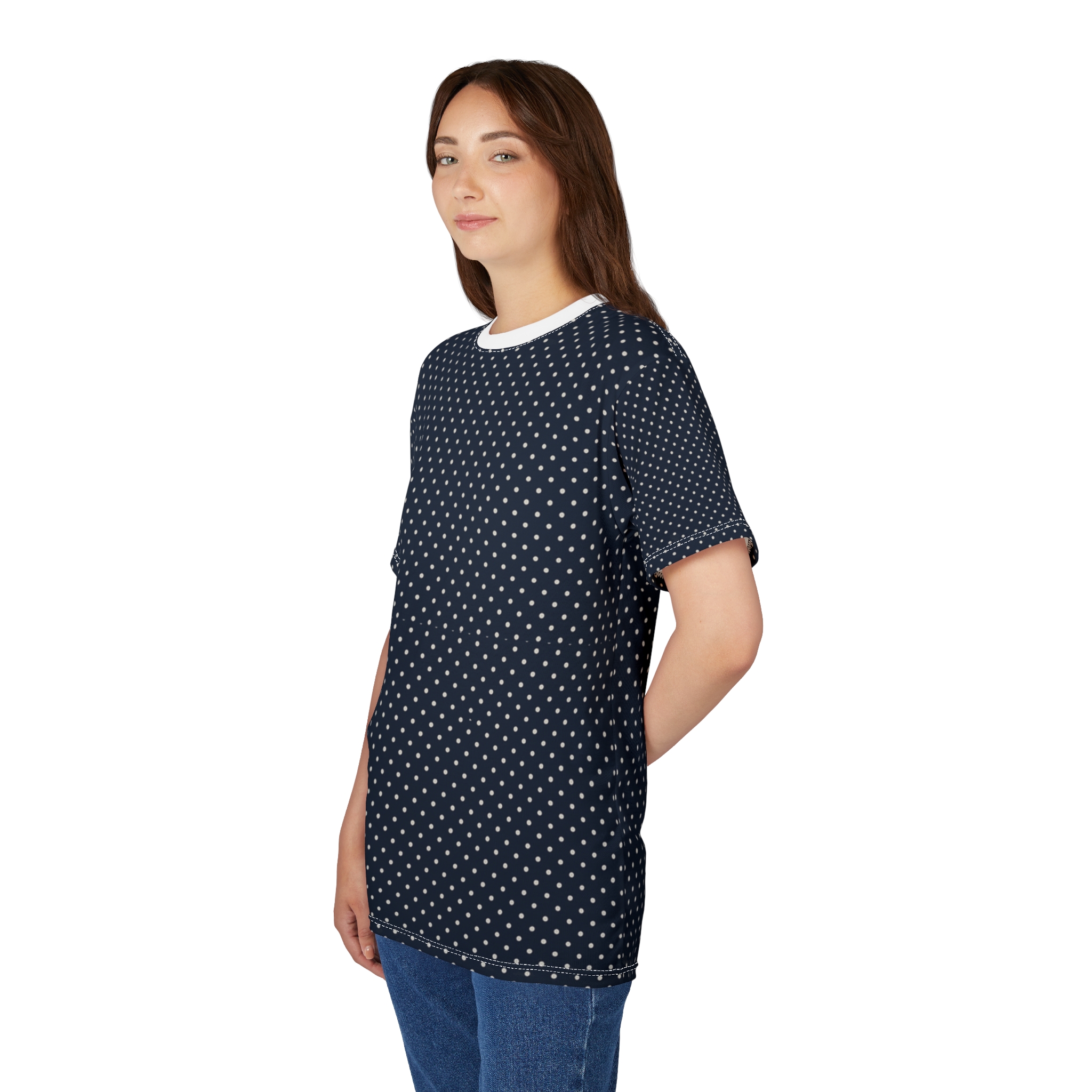 Navy Polka Dot Unisex Tee, Casual Wear, Everyday Clothing, Gift for Him/Her, Trendy Fashion, Summer Wardrobe Essential