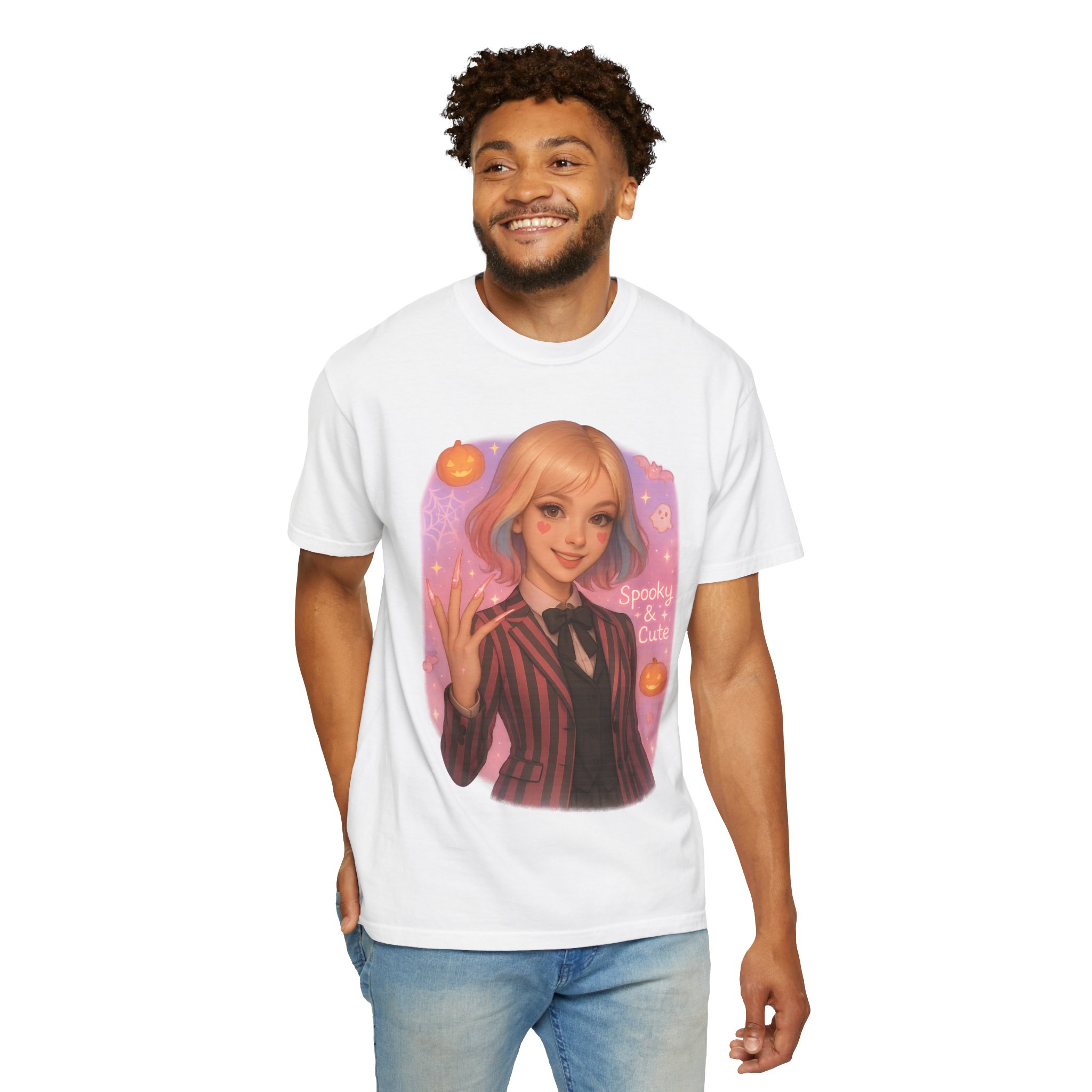 Made from premium garment-dyed cotton, this shirt offers a soft, vintage feel with durable stitching for long-lasting wear. Its unisex fit makes it perfect for men, women, and teens, with sizes from S to XXL. The relaxed cut makes it a versatile piece — whether you’re wearing it casually at home, styling it for a Halloween party, or making it part of a cute costume outfit.