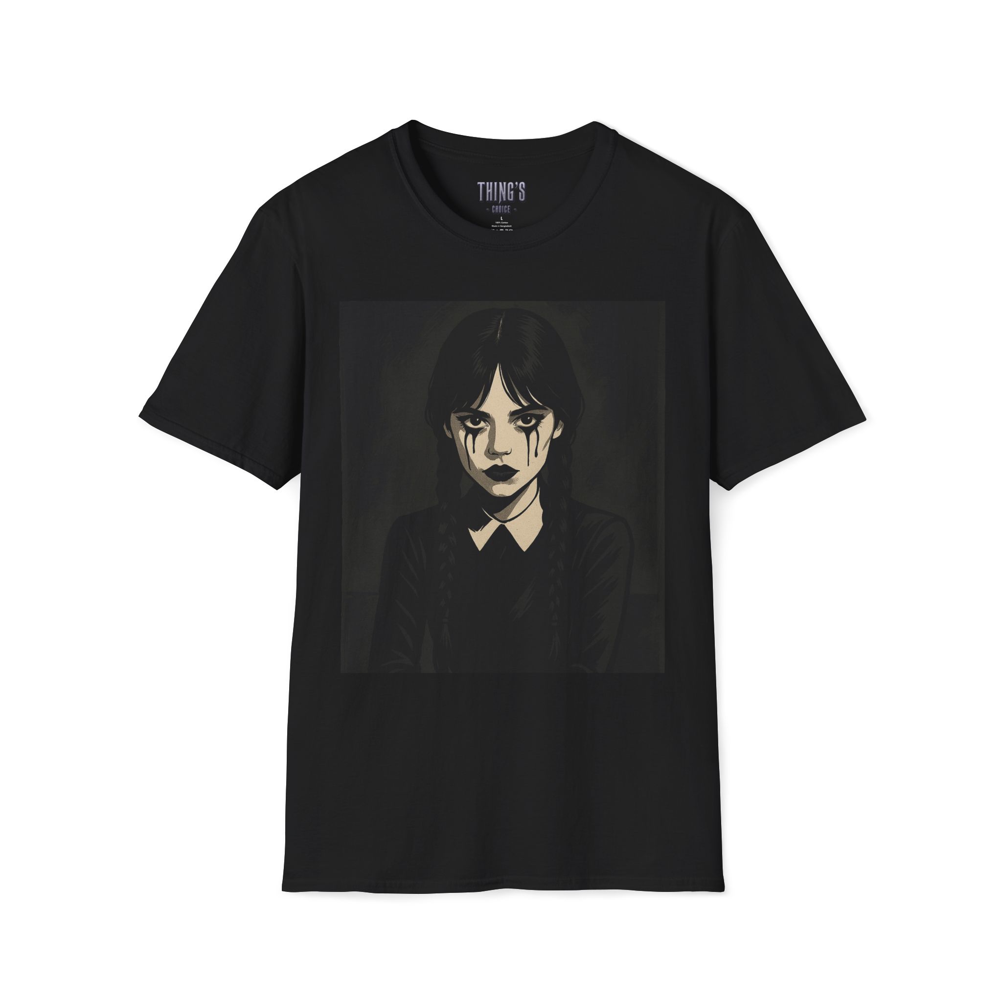 Made from lightweight, durable softstyle cotton, it delivers a comfortable fit for men, women, and teens. Available in sizes S to XXL, it’s perfect for layering with gothic skirts, jeans, or Halloween accessories. The simple design makes it easy to pair with Wednesday Addams cosplay looks or casual streetwear.